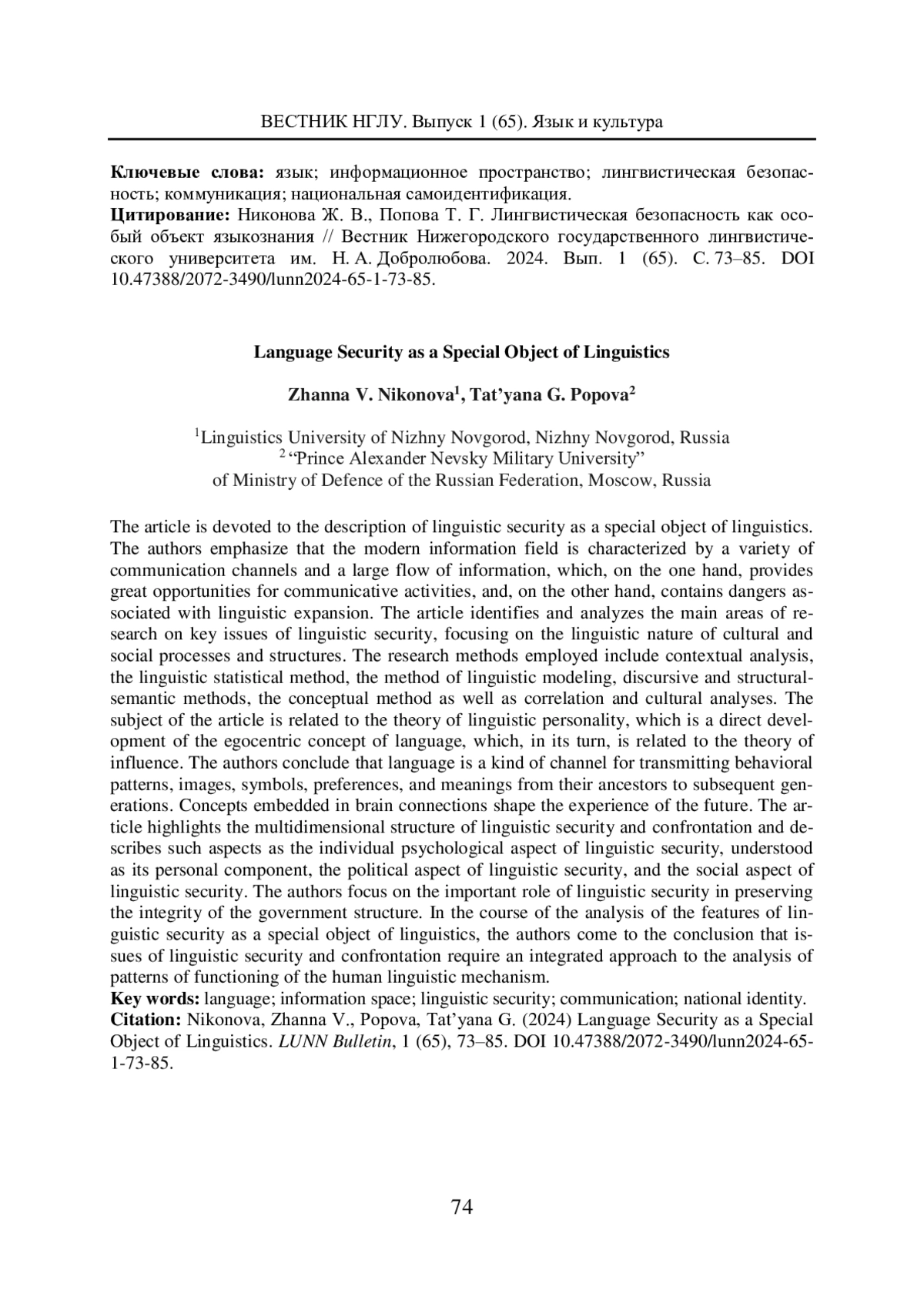 21. Языковая политика и лингвистическая безопасность: Материалы третьего международного научно-образовательного форума 03-04 октября 2019 г. Н. Новгород: НГЛУ, 2019.