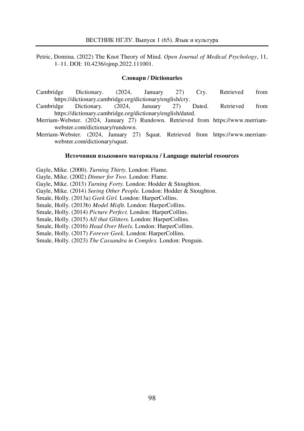 6. Кириллова Т. В. Внутренняя речь в аспекте интраперсональной коммуникации: на материале англоязычной художественной прозы: Автореф. дис. … канд. филол. наук. Самара, 2011. EDN: QFDKXH