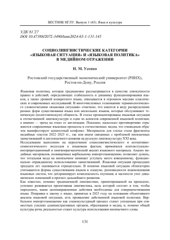 17. Михальченко В. Ю. Языковая ситуация // Социолингвистика. 2021. Вып. 3 (7). С. 116-120. EDN: XJQPKP