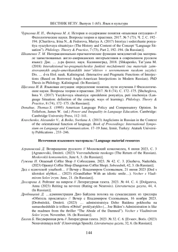 14. Куликова Э. К., Тедеева З. К. Аббревиация в контексте нюансирования новых смыслов // Вестник Нижегородского государственного лингвистического университета им. Н. А. Добролюбова. 2022. № 4 (60). С. 51-62.