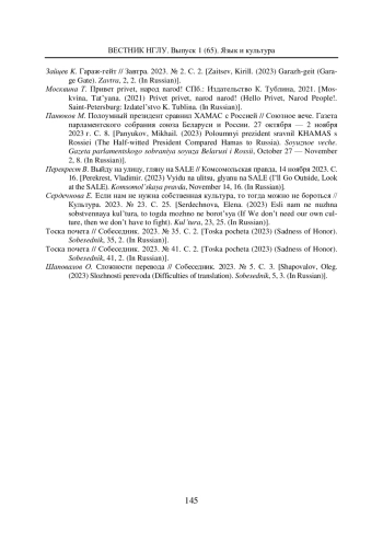 7. Брусенская Л. А., Котаева А. Р. Ценностный конфликт и проблема иноязычных заимствований в русском языке ХХI века // Вестник Нижегородского государственного лингвистического университета им. Н. А. Добролюбова. 2022. Вып. 4 (60). С. 24-38. EDN: KZVLQZ