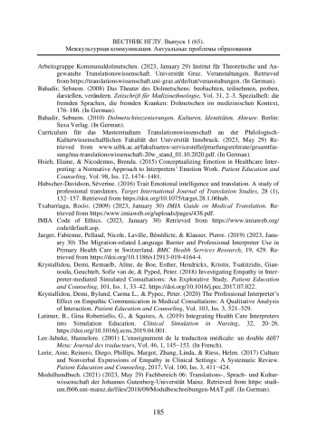 3. Корнеева Л. И., Куклина М. К. Специфичность процесса обучения медицинскому переводу // Вестник ПНИПУ. Проблемы языкознания и педагогики. 2022. № 4. С. 140-149. EDN: YANZPQ