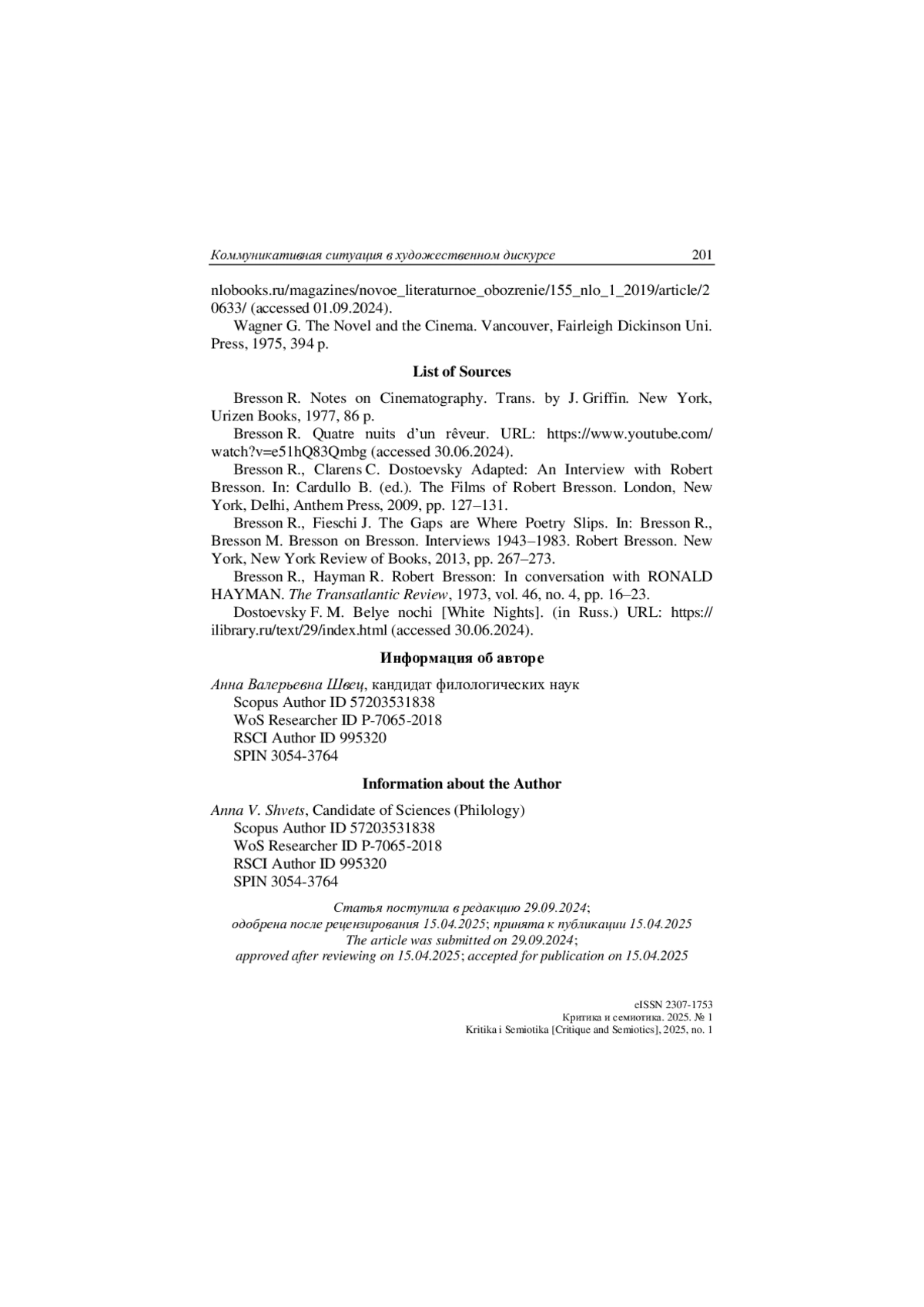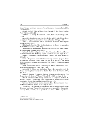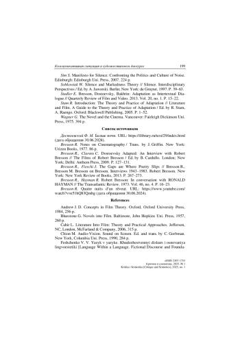 19. Stadler E. Bresson, Dostoevsky, Bakhtin: Adaptation as Intertextual Dialogue // Quarterly Review of Film and Video. 2013. Vol. 20, no. 1. P. 15-22.