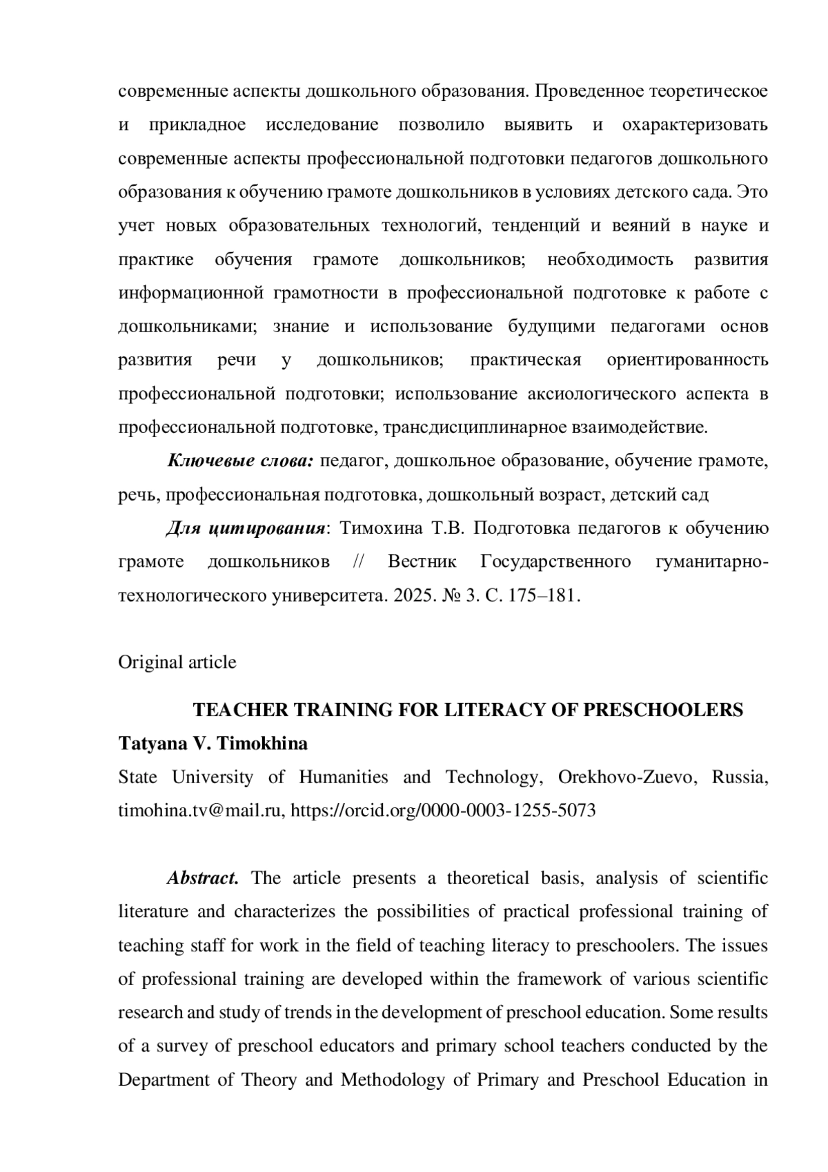 8. Тимохина Т.В. Подготовка будущих педагогов к аналитической деятельности // Вестник Государственного гуманитарно-технологического университета. 2024. № 3. С. 146-152. EDN: IKFCMQ