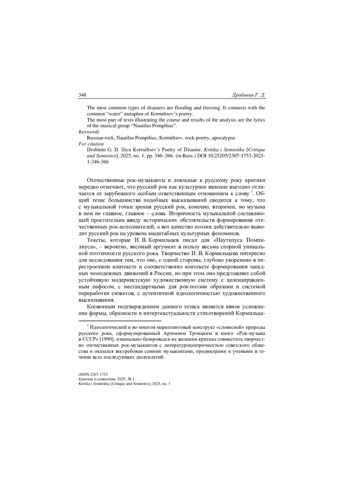 Отечественные рок-музыканты и лояльные к русскому року критики нередко отмечают, что русский рок как культурное явление выгодно отличается от зарубежного особым ответственным отношением к слову 1. Общий тезис большинства подобных высказываний сводится к тому, что с музыкальной точки зрения русский рок, конечно, вторичен, но музыка в нем не главное, главное – слова. Вторичность музыкальной составляю-щей простительна ввиду исторических обстоятельств формирования отечественных рок-исполнителей, а вот качество поэзии действительно выводит русский рок на уровень масштабных культурных феноменов.