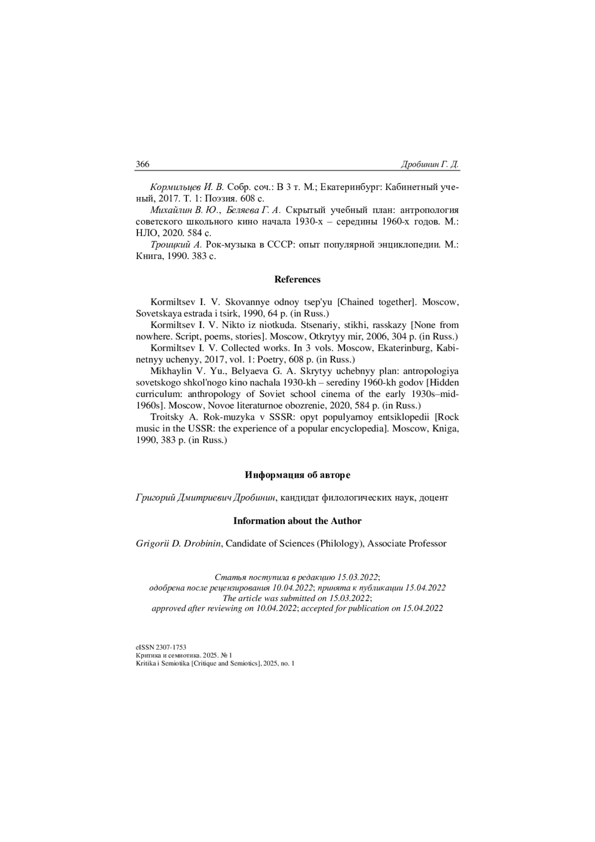 4. Михайлин В. Ю., Беляева Г. А. Скрытый учебный план: антропология советского школьного кино начала 1930-х - середины 1960-х годов. М.: НЛО, 2020. 584 с.