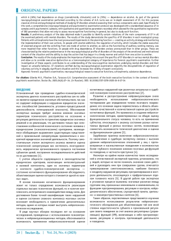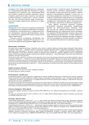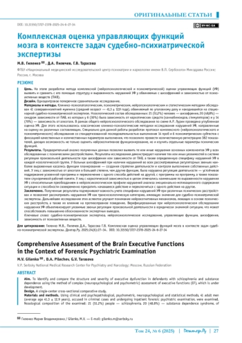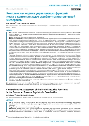Статья: Комплексная оценка управляющих функций мозга в контексте задач судебно-психиатрической экспертизы (2025)