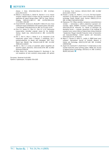 45. Kim J., Park H., Bruce J., Rowles D. et al. Assessment of the tongue-drive system using a computer, a smartphone, and a powered-wheelchair by people with tetraplegia. IEEE Trans. Neural Syst. Rehabil. Eng. 2016;24(l):68-78. 10.1109/ TNSRE.2015.2405072. DOI: 10.1109/TNSRE.2015.2405072