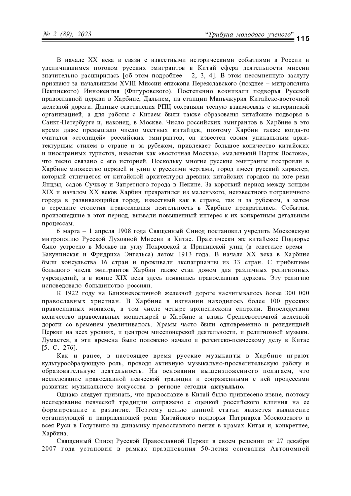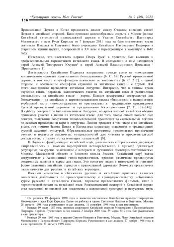 ЧЖЕН Ю. КИТАЙСКОЕ ПОДВОРЬЕ МОСКОВСКОГО ПАТРИАРХАТА В УПРАВЛЕНИИ ПРАВОСЛАВНОЙ БОГОСЛУЖЕБНО-ПЕВЧЕСКОЙ ДЕЯТЕЛЬНОСТЬЮ // КУЛЬТУРНАЯ ЖИЗНЬ ЮГА РОССИИ. 2023. № 2 (89)