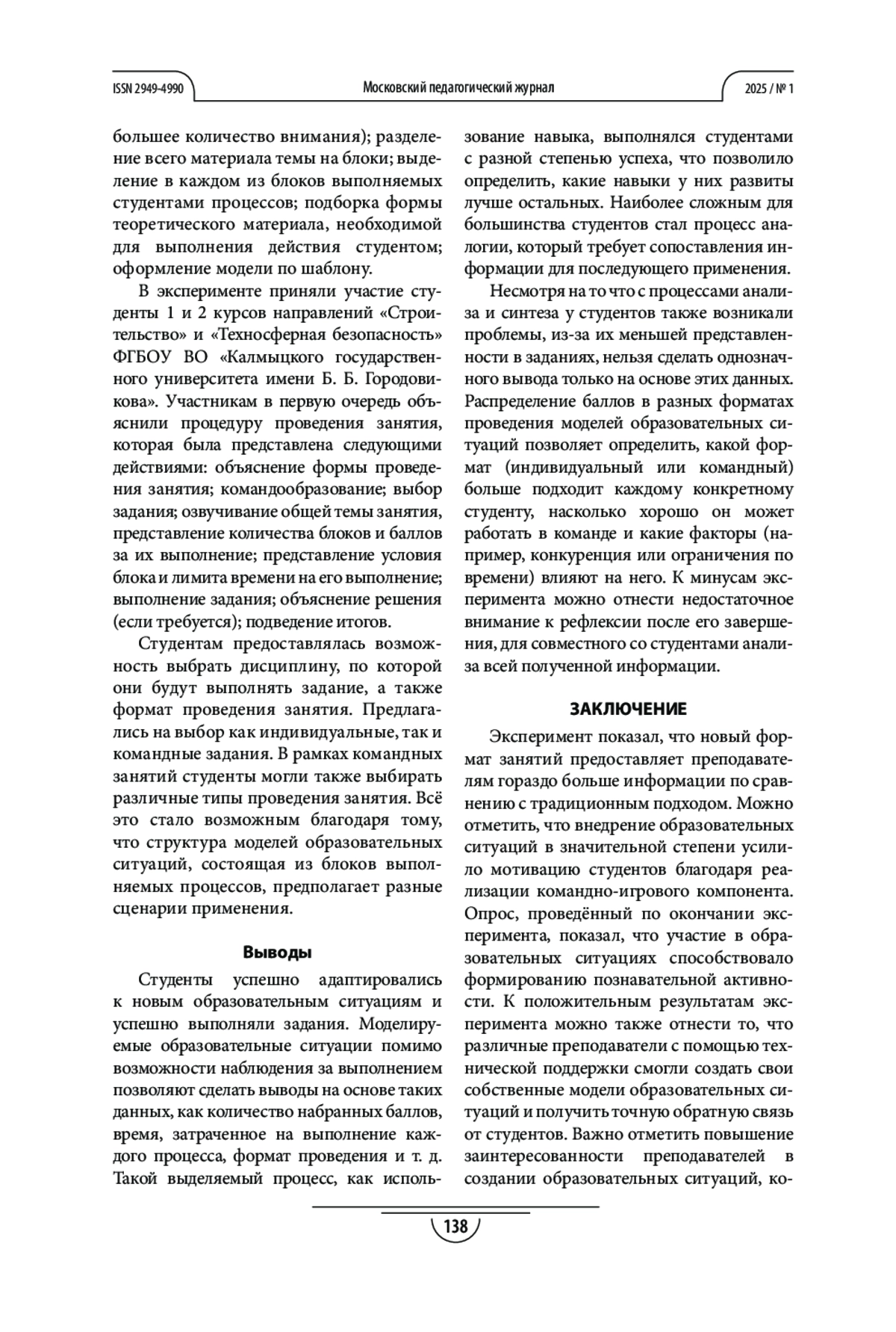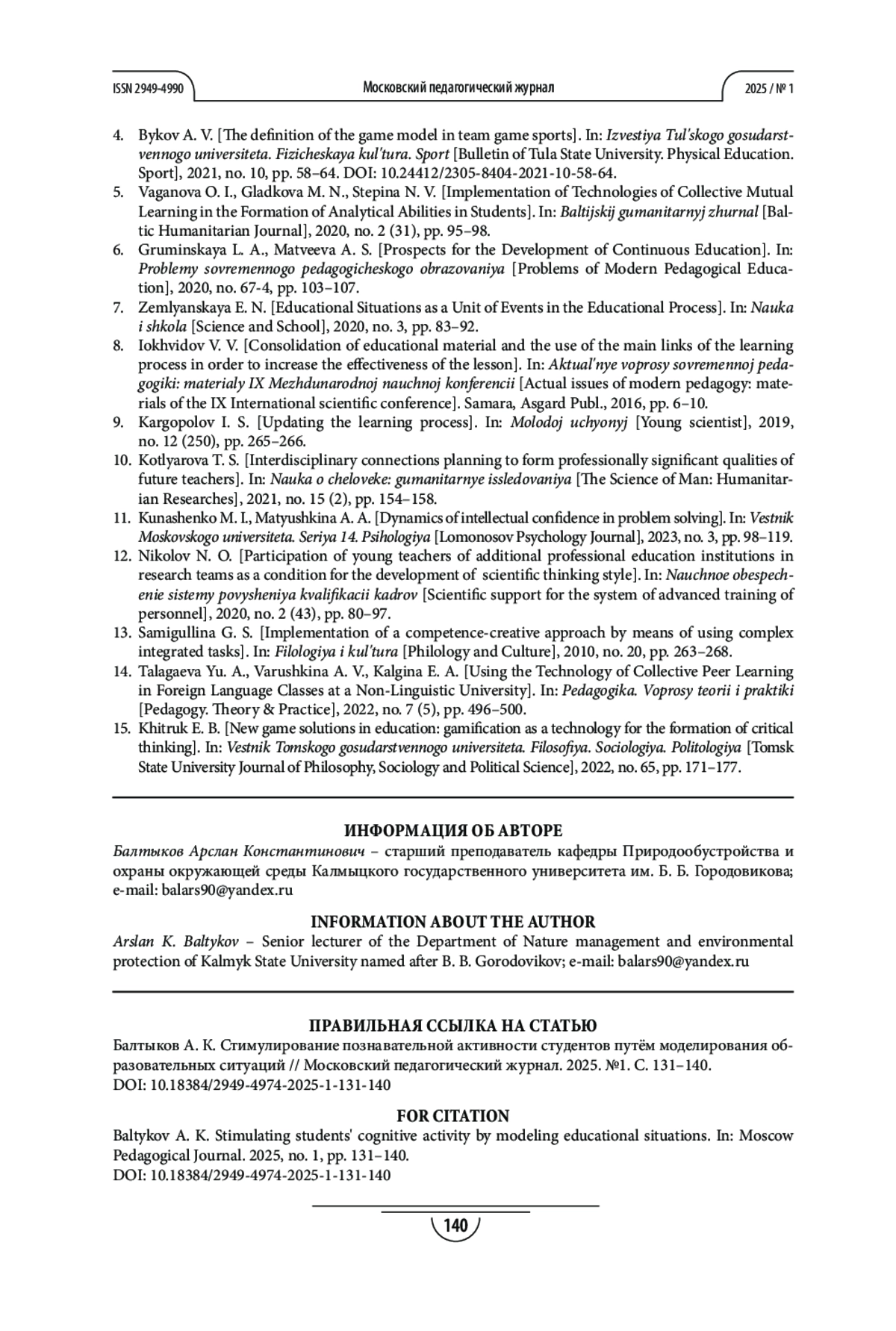 2. Балтыков А. К. Развитие навыков познавательной деятельности у студентов технических специальностей // Вестник Адыгейского государственного университета. Серия “Педагогика и психология”. 2020. №1. С. 29-36. EDN: SCDLEO