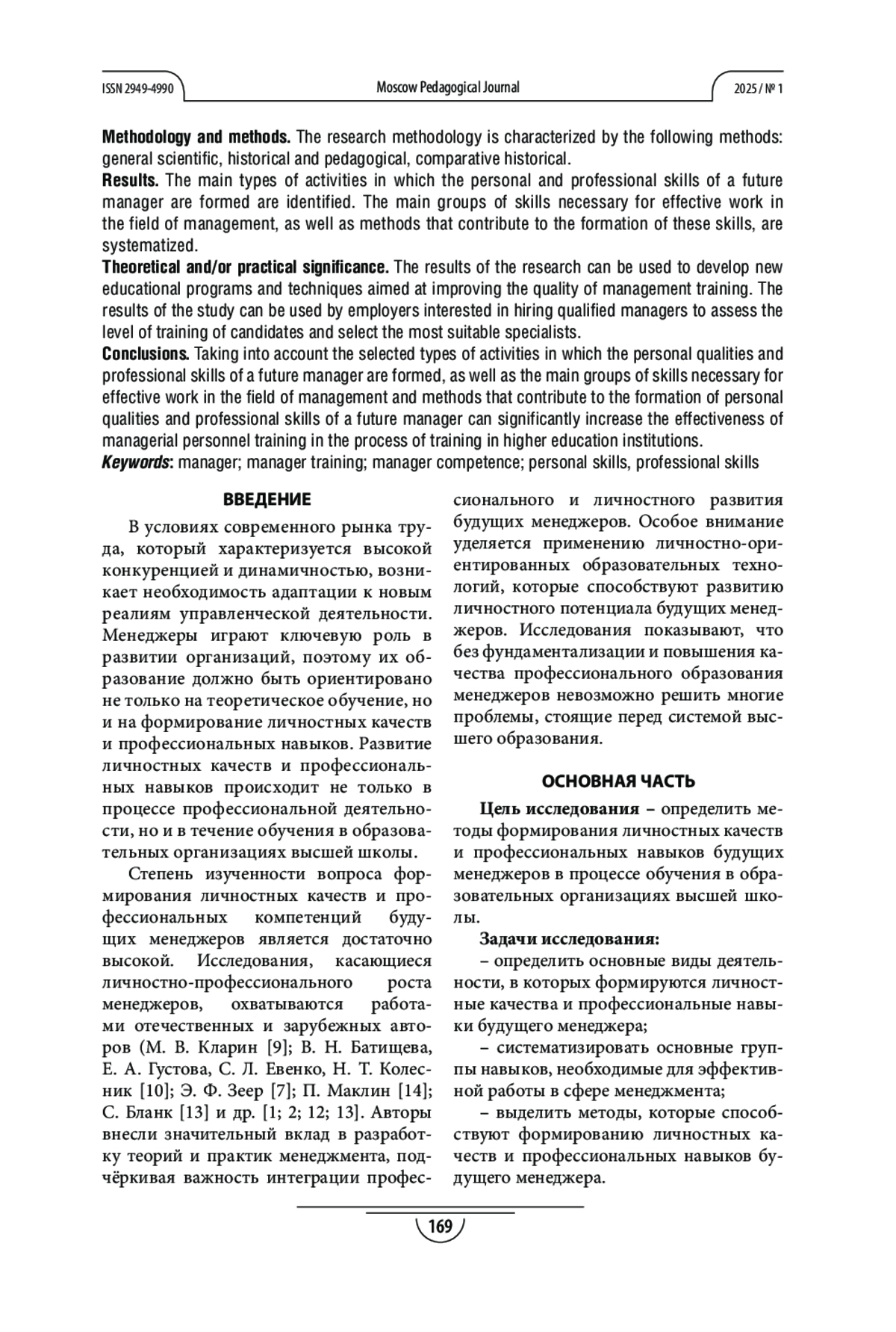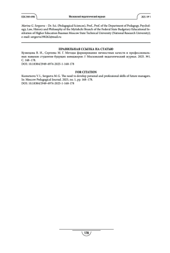 Цель. Определить методы формирования личностных качеств и профессиональных навыков будущих менеджеров в процессе обучения в образовательных организациях высшей школы.