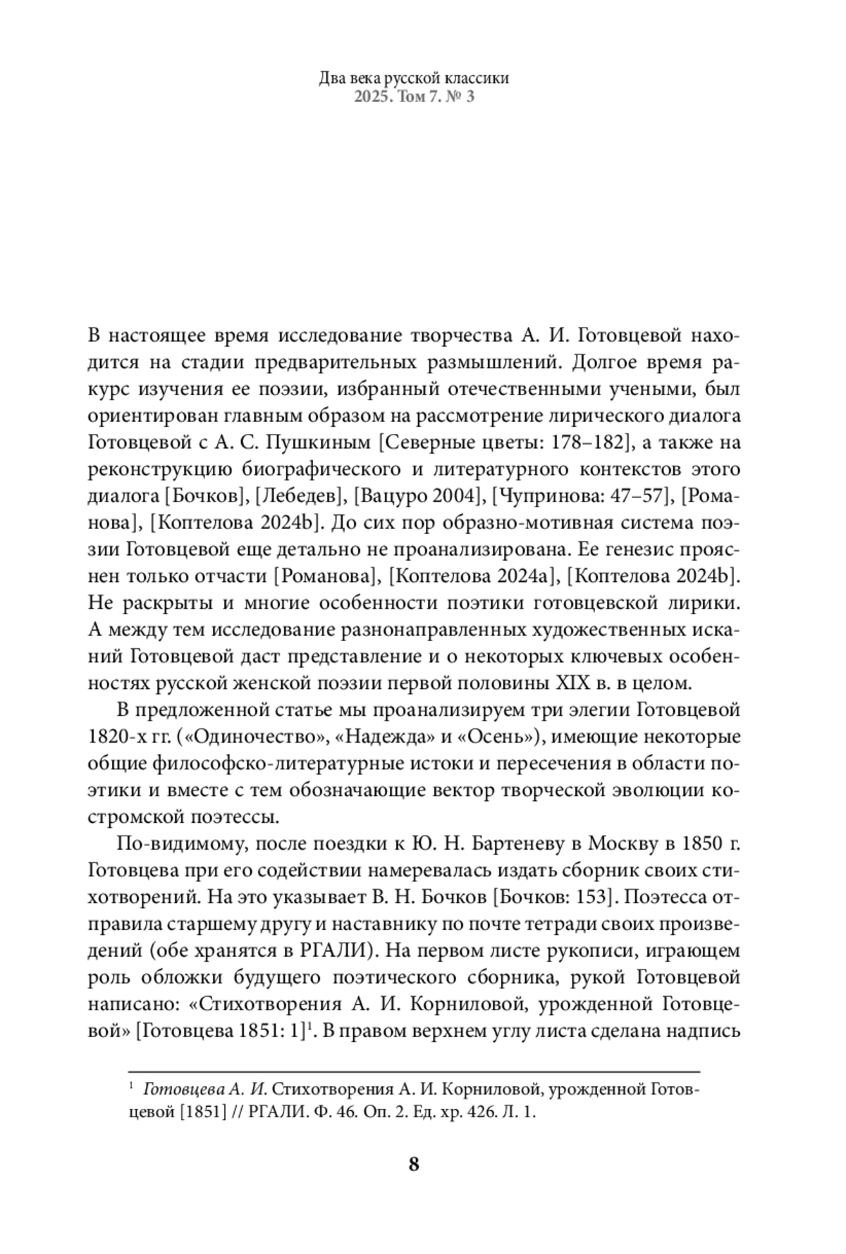 24. Коптелова Н. Г. Бартеневский след в творчестве А. И. Готовцевой // Два века русской классики. 2024b. Т. 6, № 1. С. 38-73. DOI: 10.22455/2686-7494-2024-6-1-38-73