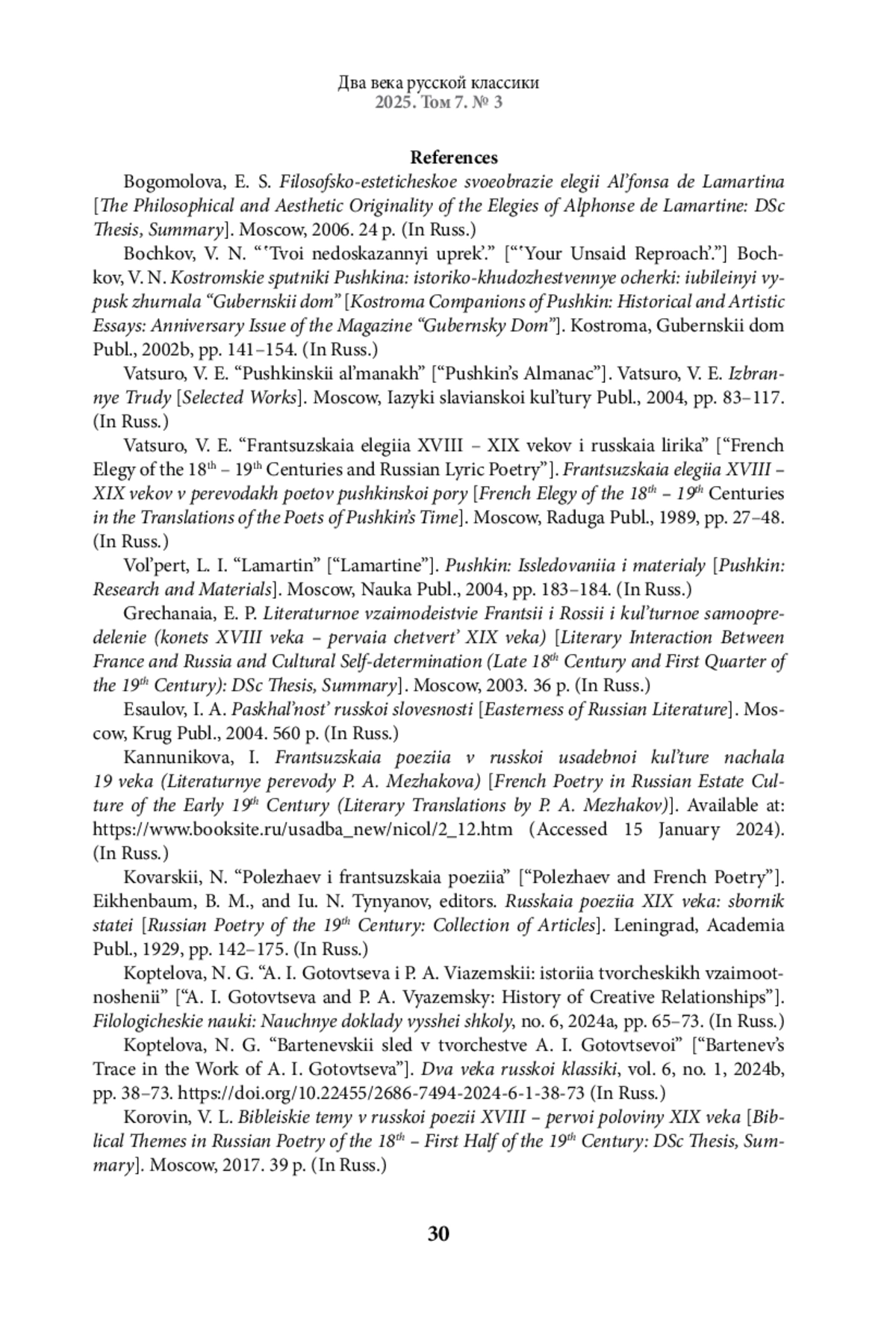 28. Романова А. Н. Собеседница поэтов Анна Готовцева. К истории литературных отношений пушкинской эпохи // Литература в школе. 2020. № 2. С. 62-75. EDN: NMGTVN