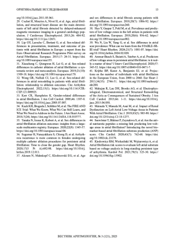 30. Lip GY, Laroche C, Boriani G, et al. Sex-related differences in presentation, treatment, and outcome of patients with atrial fibrillation in Europe: a report from the Euro Observational Research Programme Pilot survey on Atrial Fibrillation. Europace. 2015;17: 24-31. DOI: 10.1093/europace/euu155 EDN: GOLQRU