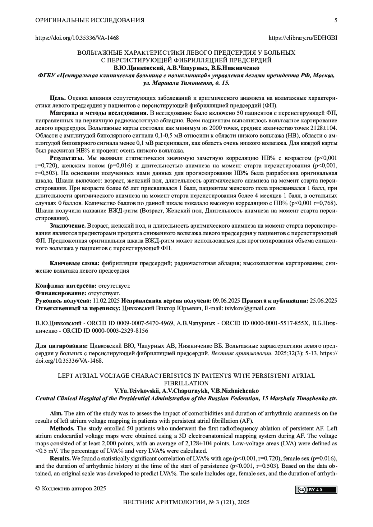 22. Гасымова НЗ, Шабанов ВВ, Сафонов НВ, и др. Многоконтактное картирование в лечении различных нарушений ритма сердца. Вестник аритмологии. 2024;31(1): 110-122. EDN: ZMDDKH