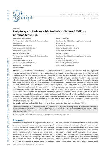 Статья: Образ собственного тела у пациентов со сколиозом как внешний критерий валидности методики SRS-22 (2025)