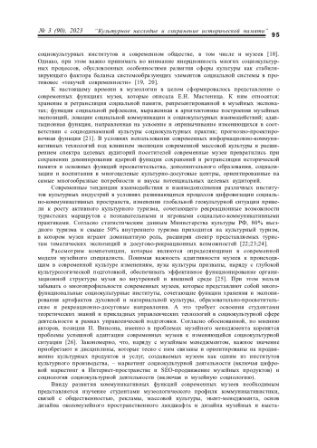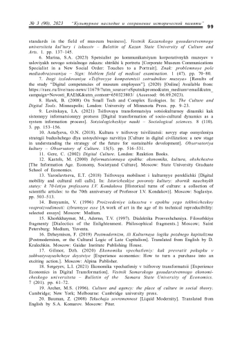 25. Полякова Е.А. Музей в контексте актуализационно-адаптационных процессов // Вестник Томского государственного университета. 2014. № 388. С. 86-93. EDN: TALBXP