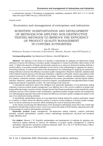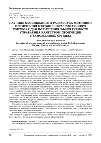 Цель исследования - разработка методики применения методов неразрушающего контроля для повышения эффективности управления качеством продукции в таможенных органах. Основные результаты исследования: