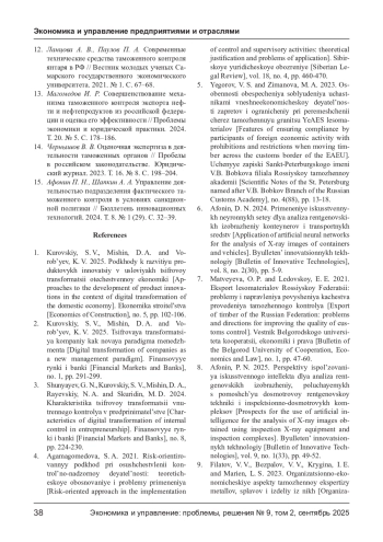 3. Шуняев Г. Н., Куровский С. В., Мишин Д. А., Раевский Н. А., Скуридин М. Д. Характеристика цифровой трансформации внутреннего контроля в предпринимательстве // Финансовые рынки и банки. 2024. № 8. С. 224-230. EDN: FSVEAW