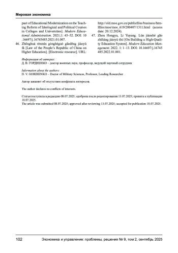 45. 谢赛银 (Се Сайин). 教育现代化对高校思政课教学改革的影响 [Влияние модернизации образования на реформу преподавания идеологических и политических курсов в колледжах и университетах]. // 现代教育管理[Современное управление образованием]. 2021; 1: 45 - 52. DOI: 10.16697/j.16745485.2021.01.007