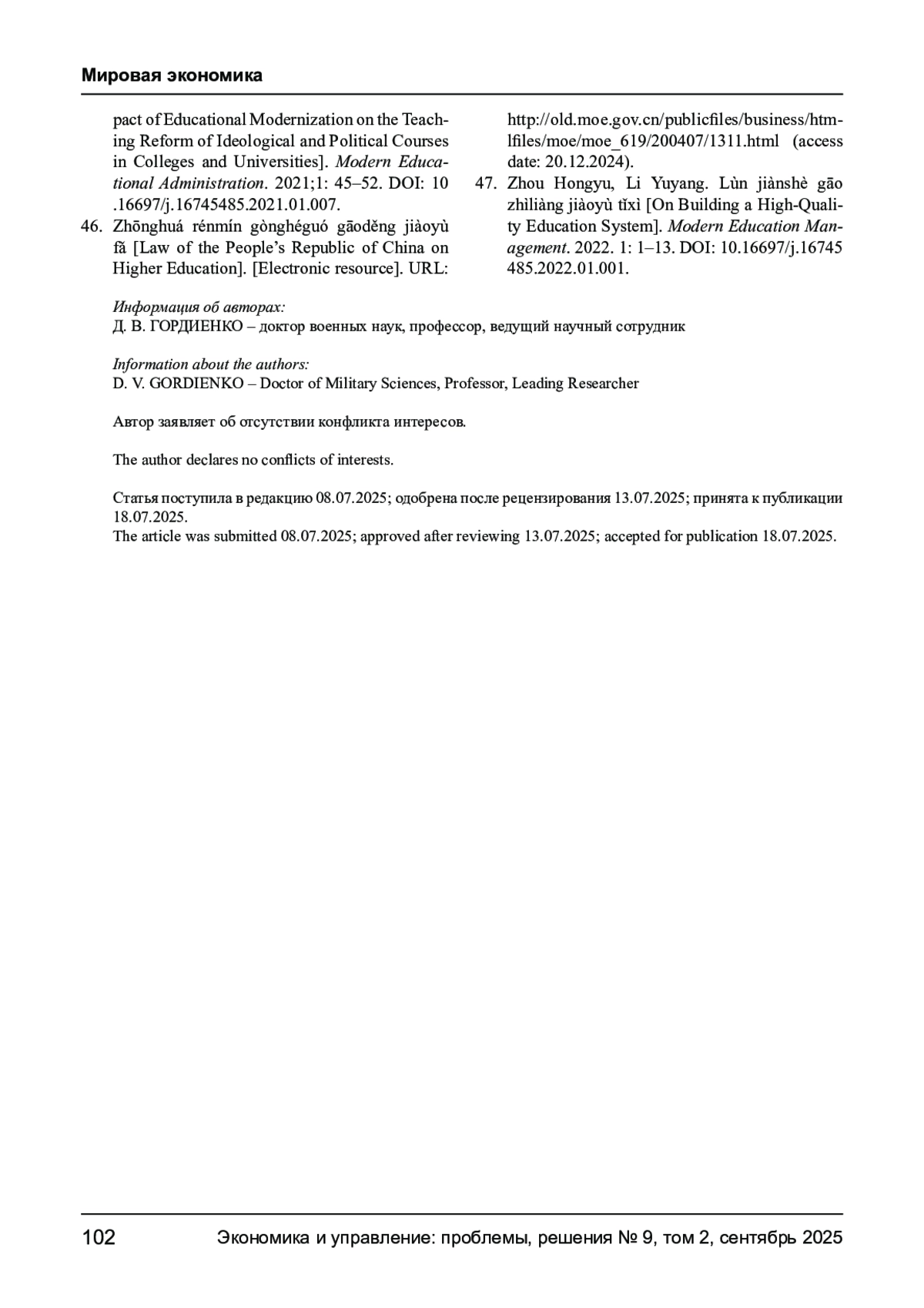 47. 周洪宇, 李宇阳 (Чжоу Хунью, Ли Юян). 论建设高质量教育体系 [О построении системы качественного образования] // 现代教育管理 [Современное управление образованием]. 2022;1: 1-13. DOI: 10.16697/j.16745485.2022.01.001