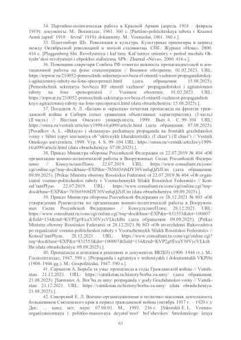 38. Приказ Министра обороны Российской Федерации от 22.07.2019 № 404 “Об организации военно-политической работы в Вооруженных Силах Российской Федерации” // КонсультантПлюс. 22.07.2019. URL: https://www.consultant.ru/cons/ cgi/online.cgi?req=doc&base=EXP&n=785845#ibDY30Vm8qQZtJUm (дата обращения: 09.09.2025).