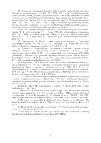 18. Хавкин Б. Л. Денацификация гитлеровской Германии. Трудное лечение страшной болезни // Независимое военное обозрение. 24.03.2022. URL: https://nvo.ng.ru/history/2022-03-24/1_1182_germany.html (дата обращения: 09.09.2025).