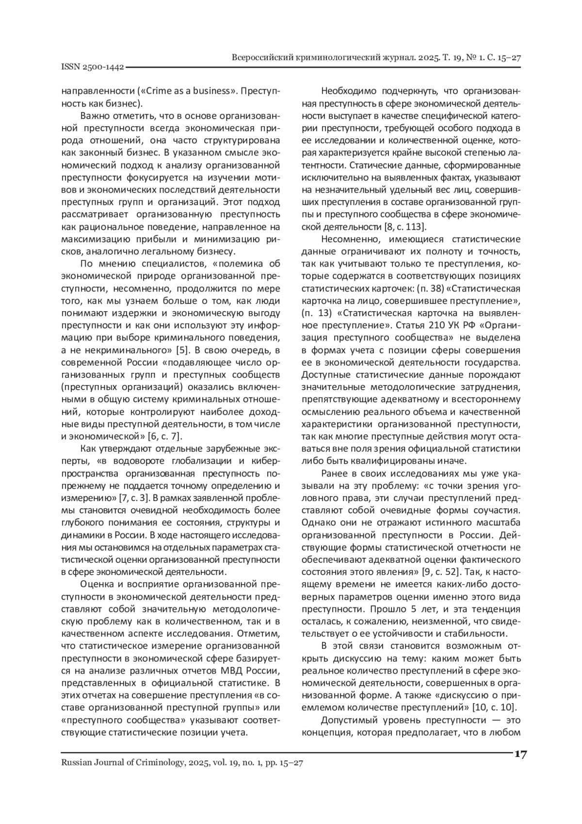 17. Мацкевич И.М. Организованная экономическая преступность / И.М. Мацкевич. // Мониторинг правоприменения. - 2016. - № 1(18). С. 4-10. EDN: VPFJYP