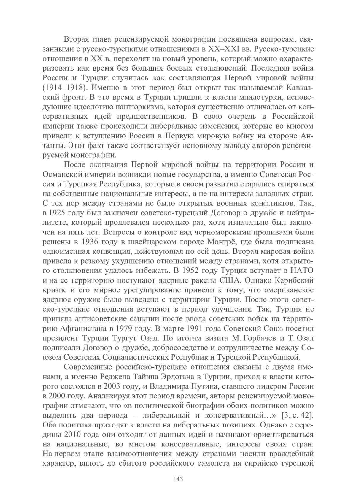 Монография Р. Р. Вахитова и В. К. Петрова «Российско-турецкие отношения в периоды консервативных и либеральных модернизаций XIX– XXI вв.» написана на важную и актуальную тему, которая наиболее востребована в настоящее время. Сегодня происходит распад глобального мира и формирование новых центров геополитического влияния. Именно такими центрами на протяжении всей своей истории были как Турция, так и Россия. Поэтому обращение к истории взаимоотношения этих стран вызывает особый интерес.