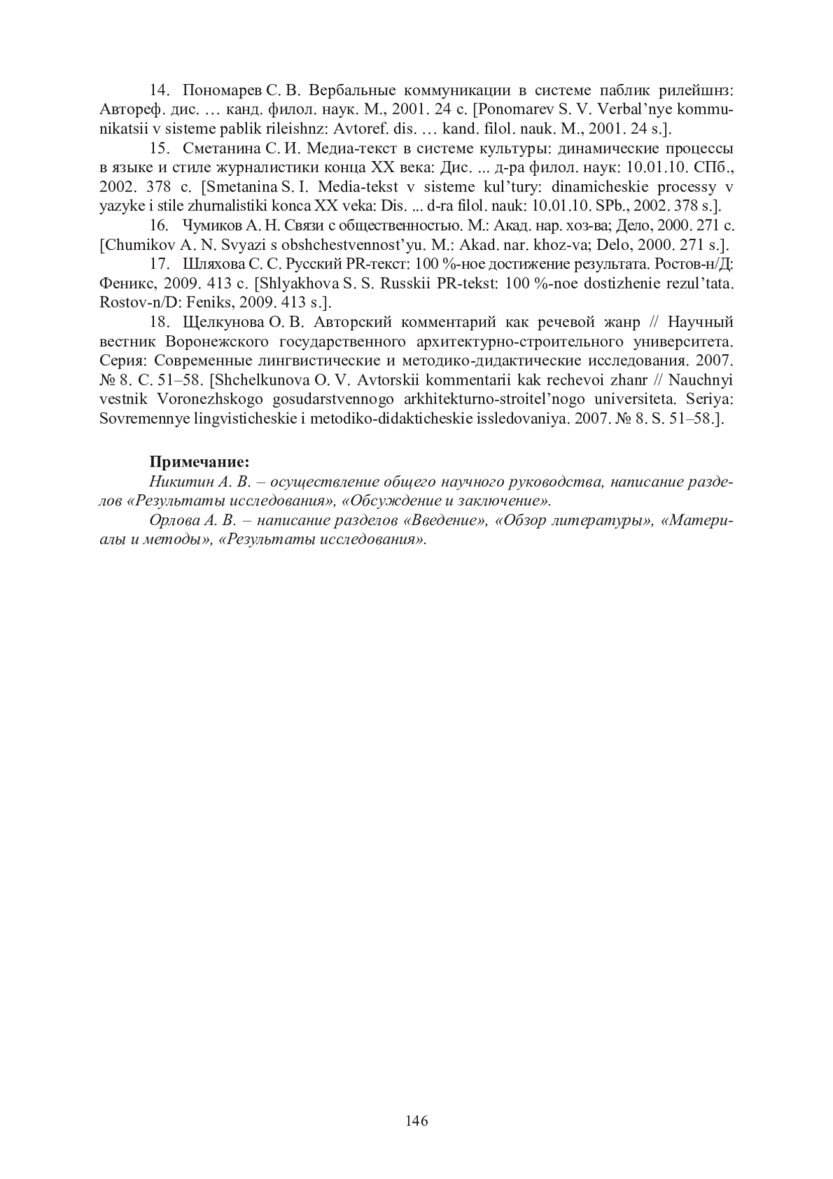 14. Пономарев С. В. Вербальные коммуникации в системе паблик рилейшнз: Автореф. дис. … канд. филол. наук. М., 2001. 24 с. EDN: NLWMPL