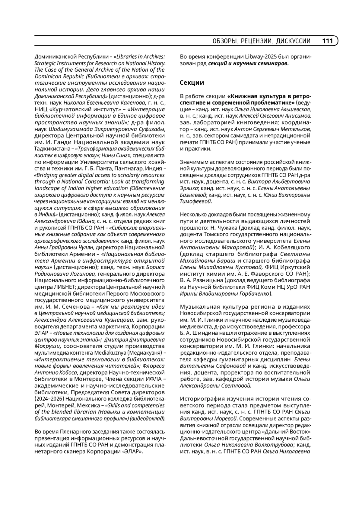 Цель статьи – представить информацию о международной научно-практической конференции «Наука, технологии, информация в библиотеках (Libway-2025)», прошедшей в ГПНТБ СО РАН 24–28 марта 2025 г., охарактеризовать мероприятия с кратким обзором докладов и сообщений.