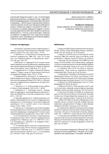 Ключевые фразы: БИБЛИОГРАФИЯ, а и георгиевский, научная библиотека томского государственного университета, Западная Сибирь, краеведение, история библиотечного дела