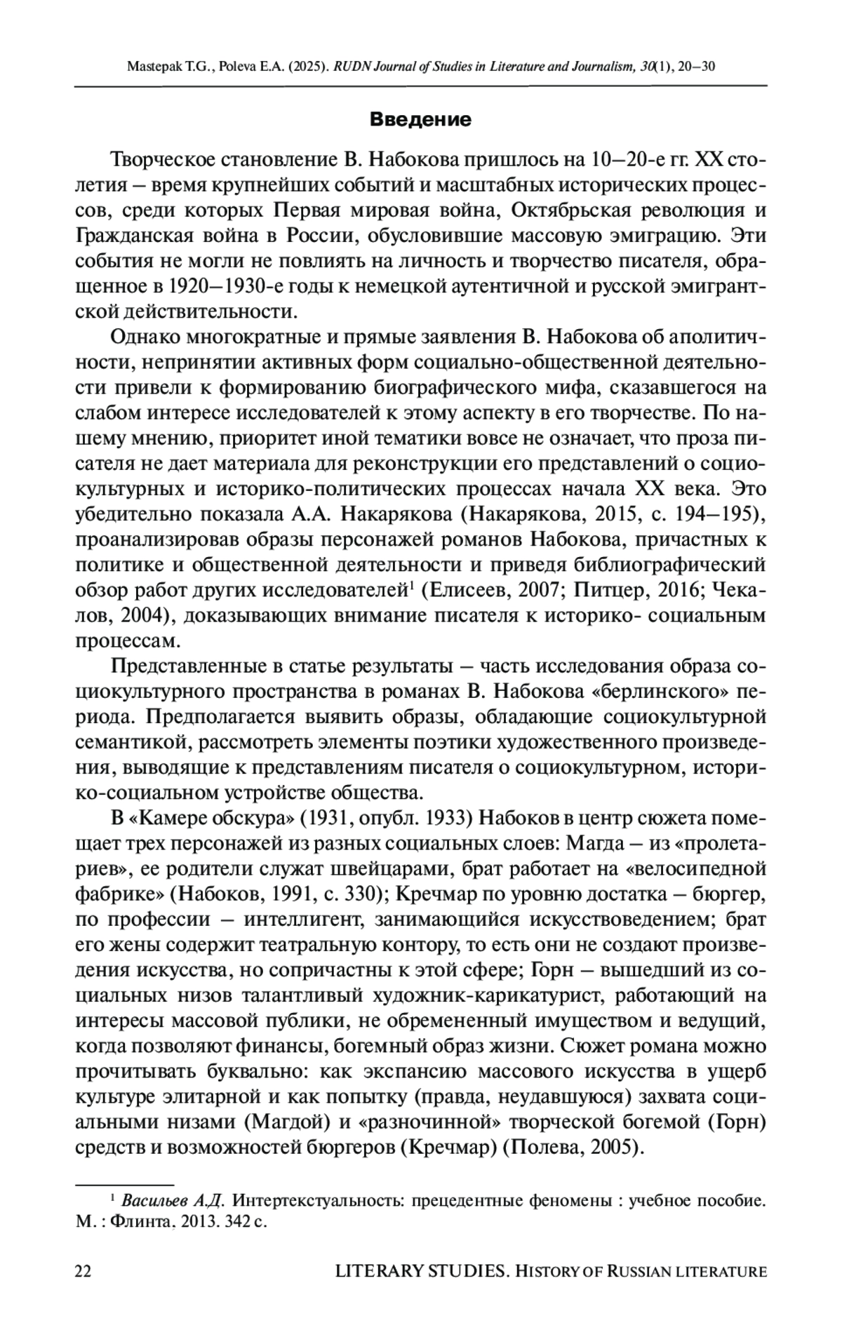 7. Накарякова А.А. Творчество Владимира Набокова: политический аспект // Политическая лингвистика. 2015. № 1. С. 193-200. EDN: TWGEKN