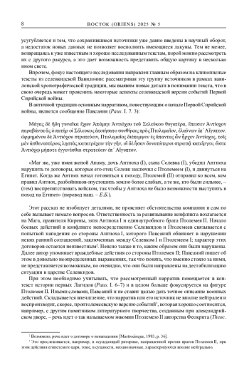 2. Зелинский А.Л. Результаты I Сирийской войны для государства Птолемеев. Восток (Oriens). 2015. № 5. С. 34-41.