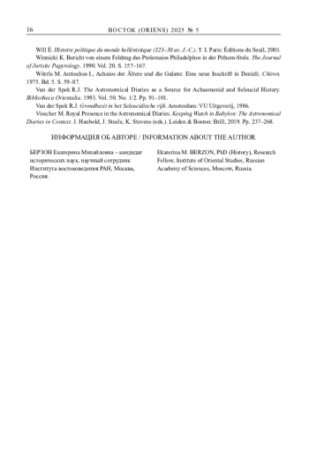 25. Van der Spek R.J. The Astronomical Diaries as a Source for Achaemenid and Seleucid History. Bibliotheca Orientalia. 1993. Vol. 50. No. 1/2. Pp. 91-101.