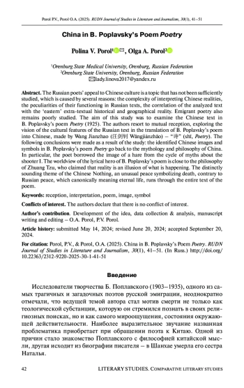 Обращение русских поэтов к культуре Китая - тема, все еще недостаточно изученная, что вызвано несколькими причинами: сложностью интерпретации китайских реалий, особенностями их функционирования в русских текстах, соотнесением анализируемого текста с «восточной» внетекстовой исторической и географической реальностью. Малоизученной остается и эмигрантская поэзия.