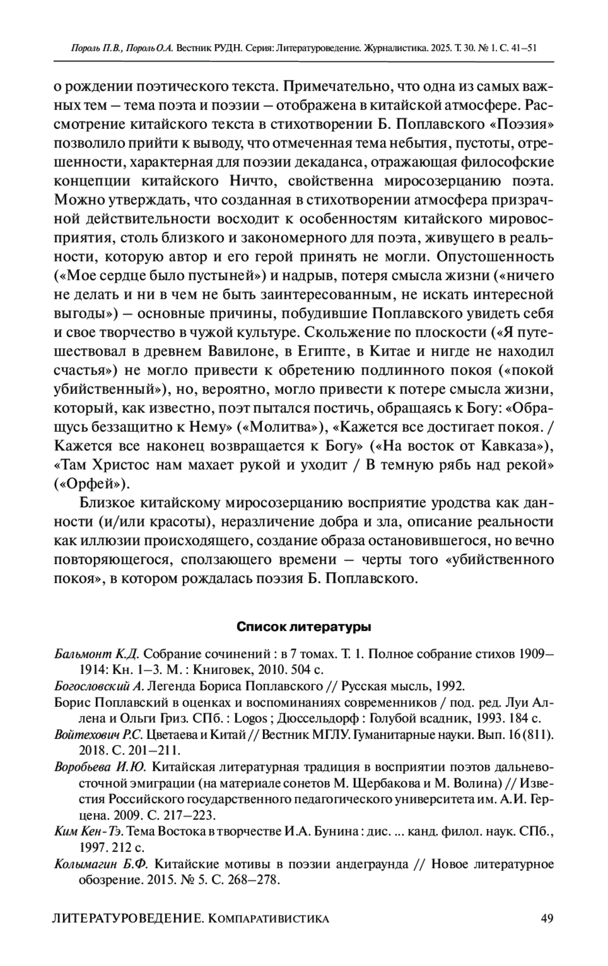 5. Воробьева И.Ю. Китайская литературная традиция в восприятии поэтов дальневосточной эмиграции (на материале сонетов М. Щербакова и М. Волина) // Известия Российского государственного педагогического университета им. А.И. Герцена. 2009. С. 217-223. EDN: KWFJQH