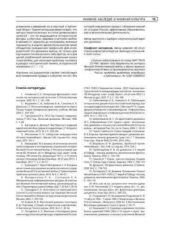 7. Кузнецов А. С. Фронтовой дневник С. Я. Беседина как источник для изучения антропологического содержания Великой Отечественной войны // Гуманитарные проблемы военного дела. 2016. № 4. С. 44-47.
