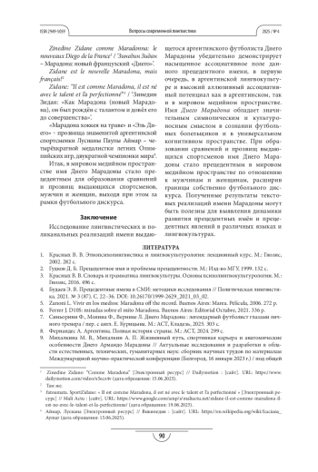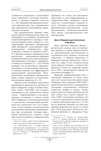 12. Chesnokova O. S. Apodos de los futbolistas insignia mexicanos, colombianos, argentinos y peruanos // Njinga e Sepé: Revista Internacional de Culturas, Línguas Africanas e Brasileiras. 2024. Vol. 4. No. S1. P. 95-130. EDN: NRRBEA