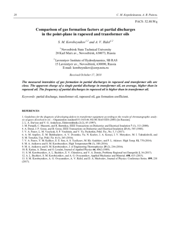 S. M. Korobeynikov and A. V. Ridel Comparison of gas formation factors at partial discharges in the point-plane in rapeseed and trans-former oils 25