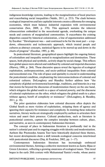 17. Vadde, A. (2011). Cross-pollination: Ecocriticism, zoocriticism, postcolonialism. Contemporary Literature, 52(3), 565-573. DOI: 10.1353/cli.2011.0031