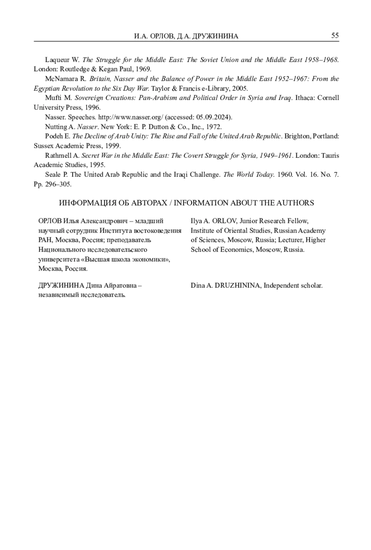 ОРЛОВ И. А., ДРУЖИНИНА Д. А. ДОЛЖЕН ОСТАТЬСЯ ТОЛЬКО ОДИН: ИСТОРИЯ РАЗВИТИЯ ОТНОШЕНИЯ ГАМАЛЯ АБД АН-НАСЕРА К АБД АЛЬ-КАРИМУ КАСЕМУ В КОНТЕКСТЕ ВЗЛЁТА И ПАДЕНИЯ ПАНАРАБСКОГО ДВИЖЕНИЯ // ВОСТОК. АФРО-АЗИАТСКИЕ ОБЩЕСТВА: ИСТОРИЯ И СОВРЕМЕННОСТЬ. 2025. № 5