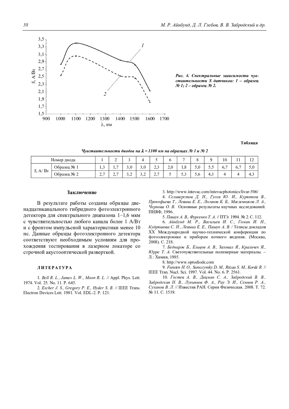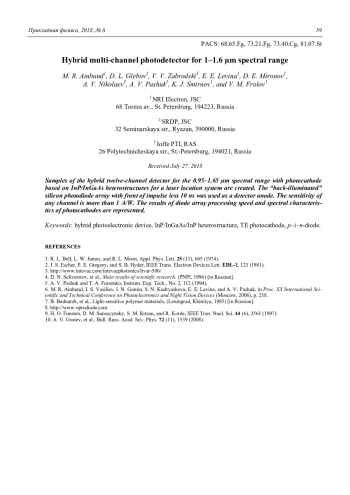 АЙНБУНД М. Р., ГЛЕБОВ Д. Л., ЗАБРОДСКИЙ В. В., ЛЕВИНА Е. Е., МИРОНОВ Д. Е., НИКОЛАЕВ А. В., ПАШУК А. В., СМИРНОВ К. Я., ФРОЛОВ В. М. ГИБРИДНЫЙ МНОГОКАНАЛЬНЫЙ ФОТОПРИЕМНИК ДЛЯ СПЕКТРАЛЬНОГО ДИАПАЗОНА 1–1,6 МКМ // ПРИКЛАДНАЯ ФИЗИКА. 2018. №6