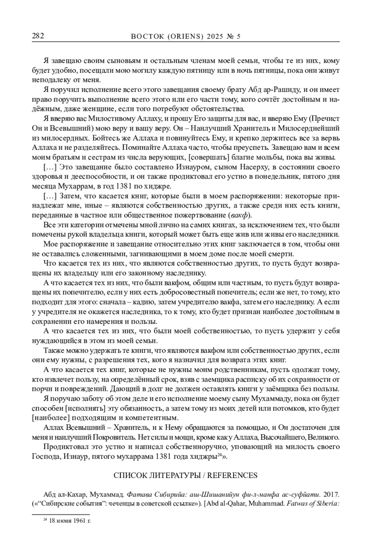 1. Абд ал-Кахар, Мухаммад. Фатава Сибирийа: аш-Шишанийун фи-л-манфа ас-суфйати (“Сибирские события”: чеченцы в советской ссылке“). URL: https://www.ida2at.com/fatwa-of-siberia-chechens-in-soviet-exile.