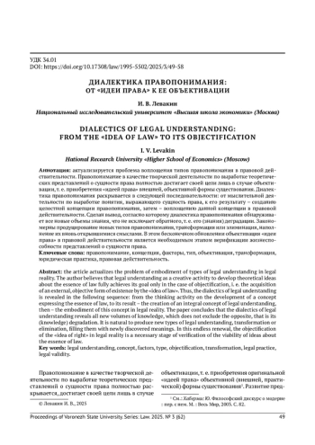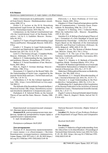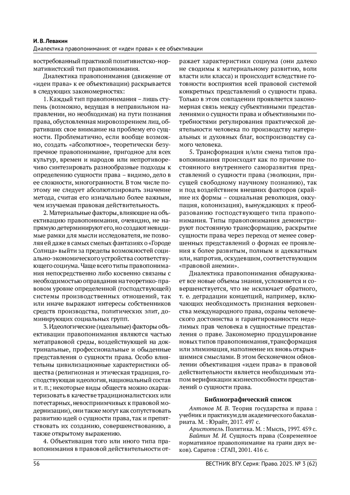 ЛЕВАКИН И. В. ДИАЛЕКТИКА ПРАВОПОНИМАНИЯ: ОТ «ИДЕИ ПРАВА» К ЕЕ ОБЪЕКТИВАЦИИ // ВЕСТНИК ВОРОНЕЖСКОГО ГОСУДАРСТВЕННОГО УНИВЕРСИТЕТА. СЕРИЯ: ПРАВО. 2025. № 3 (62)