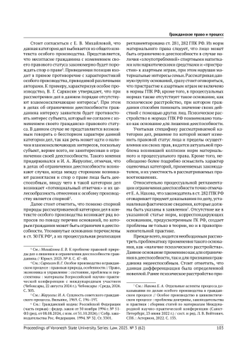 6. Михайлова Е. В. К проблеме правовой природы дел о лишении и ограничении дееспособности гражданина // Юрист. 2023. № 8. С. 45-50.
