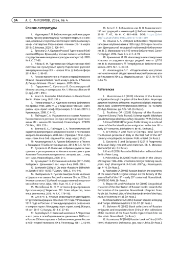 1. Муромцева Л. П. Библиотеки русской эмиграции сквозь призму революции // На пороге перемен: книжные, архивные и музейные коллекции : материалы науч. конф. «Четвертые Рязановские чтения» (15-16 марта 2018 г.). Москва, 2020. С. 126-141.