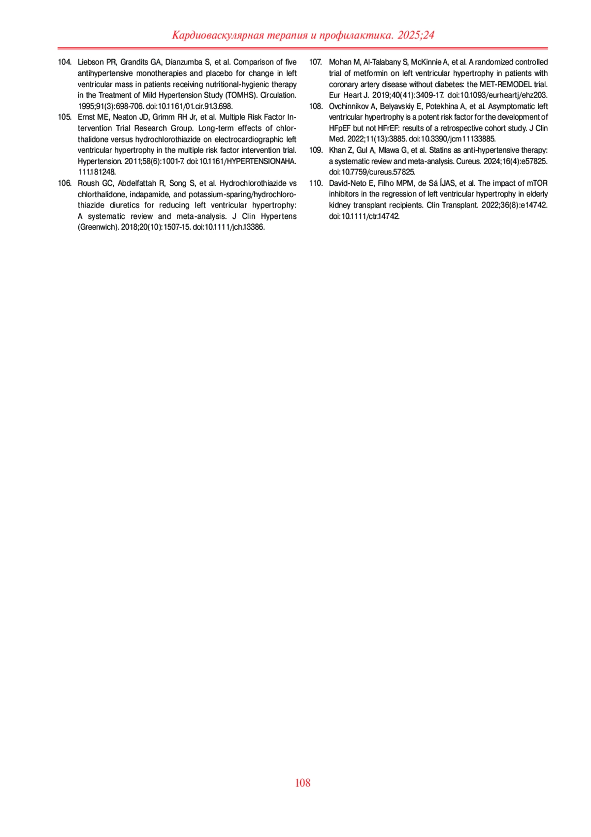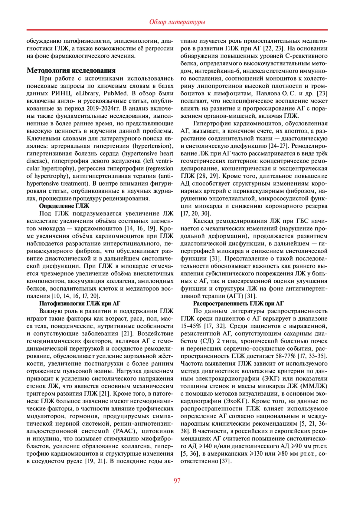 23. Павлова О. С., Ясюкайть Н. В., Барбук О. А. и др. Ассоциация показателей воспаления и гематологических индексов с гипертрофией левого желудочка у пациентов с артериальной гипертензией. Артериальная гипертензия. 2024;30(1):108-20. DOI: 10.18705/1607-419X-2024-2405