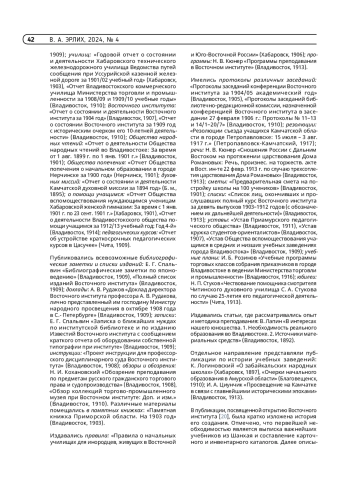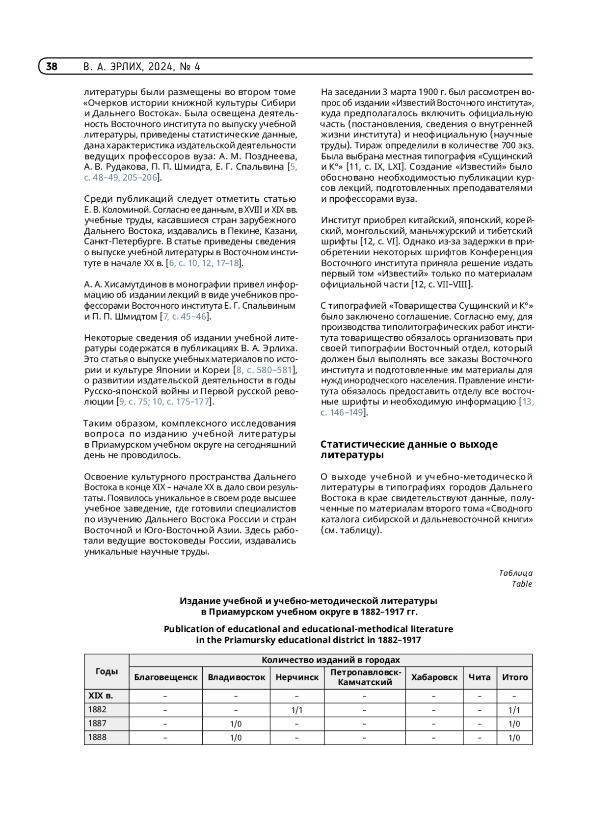 8. Эрлих В.А. Научная книга Сибири и Дальнего Востока в 1904-1907 гг. // Труды ГПНТБ СО РАН. Новосибирск : ГПНТБ СО РАН, 2013. Вып. 3. Книжная культура Сибири и Дальнего Востока в условиях общественных кризисов XIX - начала XXI в. - С. 69-80.