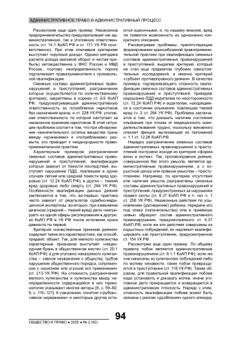 Статья: ПРОБЛЕМЫ КВАЛИФИКАЦИИ СМЕЖНЫХ СОСТАВОВ АДМИНИСТРАТИВНЫХ ПРАВОНАРУШЕНИЙ И ПРЕСТУПЛЕНИЙ (2025)